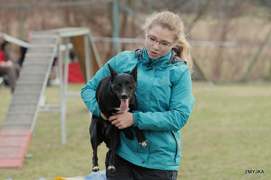 21. - 22.2. jsme se vydali na dlouhou cestu na závody Silesian Open, které se konali v polské Czeladzi. Skvělé závody, parádní plán, teď jen, jak se tam dostat, že. :D Původní plán jet ve čtvrtek do Ostravy a zůstat tam do pátku, a odsud do Ostravy neklapl, a tak nás s Ájou čekala dlouhá a útrpná cesta do Prahy, Řitky (prvně tedy do jakési vesnice na druhé straně, 3km daleko :D) a po nekočnečném hledání haly, o které NIKDO nevěděl, i do Polska. Tam jsme se ubytovaly v prima hotelu a ráno se vydaly do parádní vyhřáté haly, kde se běhalo. Ája byla skvělá, občas lehce přetočená, parkury těžké. Praly jsme se statečně, ale drobná zaváhání a chyby v plánování nás stály ty zpropadené stupínky. :D Neměla jsem ale vůbec špatný pocit, naopak. Ája se moc snažila, všechna áčka prošlápnutá, kladiny zastavené, slalomy samostatné. Pokulhával klasicky kontakt v těžkých pasážích a docela nečekaně houpačka, kde jsme se nějak špatně domluvily na kritérií a opravovala jsem ji v každém běhu. V neděli večer jsme se vydali směr Ostrava, kde na mě už čekala moje milá Kačka a společně jsme strávily krásný den na Hájovně. Díky, díky moc za všechno:) V pondělí jsme s Ájou sedly na Pendolino (to je pane jízda! :D) a večer byly v Boleslavi:) Video tady :))