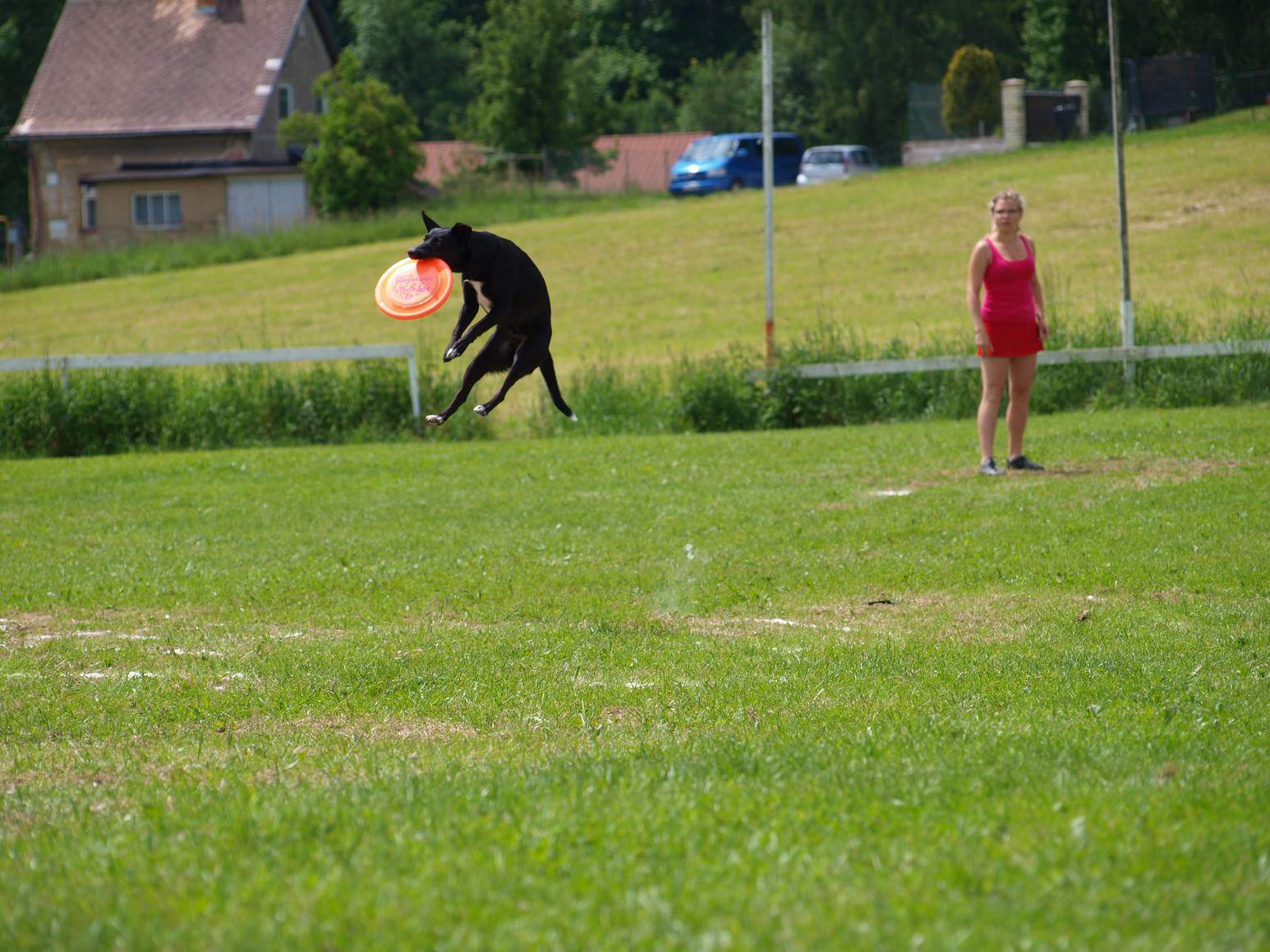 Dostala jsem se k tomu prakticky náhodou. :D V červnu 2013 jsme se zúčastnili ČMKU Junior Openu, juniorské soutěže,kde se dalo závodit v agility, junior handlingu a...ve frisbee. Protože Ája už nějaké ty zkušenosti s chytáním disků měla, rozhodla jsem se učit za pochodu :D